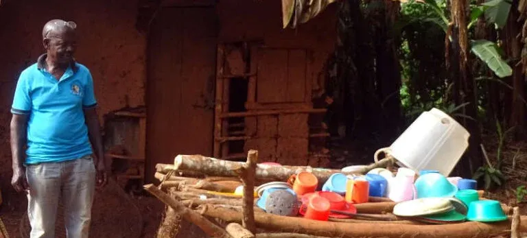here, showing families how to use the power of the sun and a drying rack to keep kitchen utensils clean